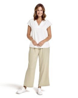Kevyt ja helposti puettava pusero rypytetystä materiaalista, jossa on V-pääntie ja lyhyet holkkihihat. Sopii mainiosti s...