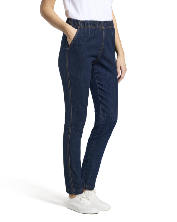 Mukava malli jossa pehmeä kuminauhavyötärö. Kapeat lahkeensuut. Taskut ja muotolaskokset edessä. Lahkeen sisäpituus n. 76 cm joka koossa. 79 % puuvillaa, 20 % polyesteriä, 1 % elastaania. Hienopesu 40°.