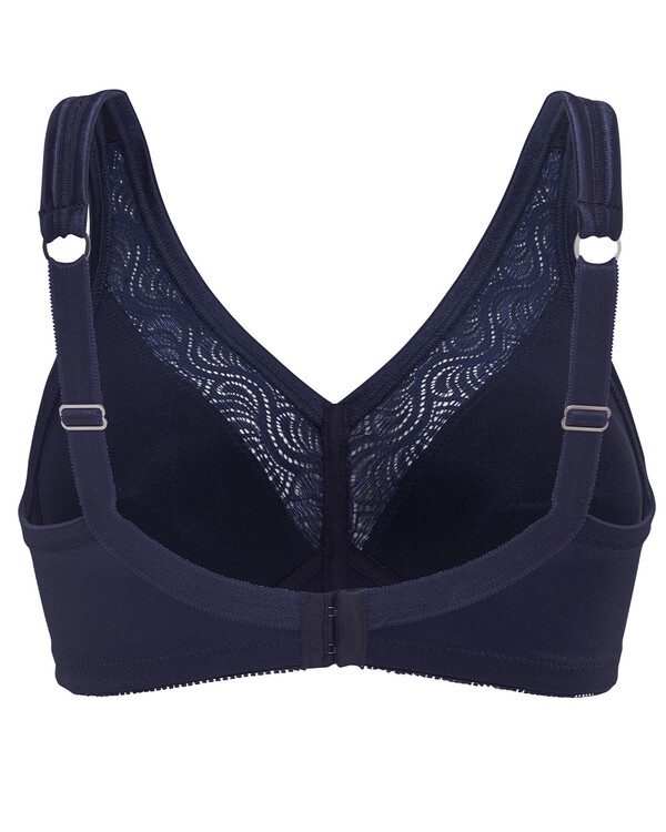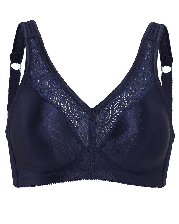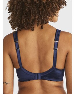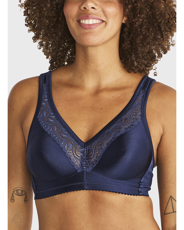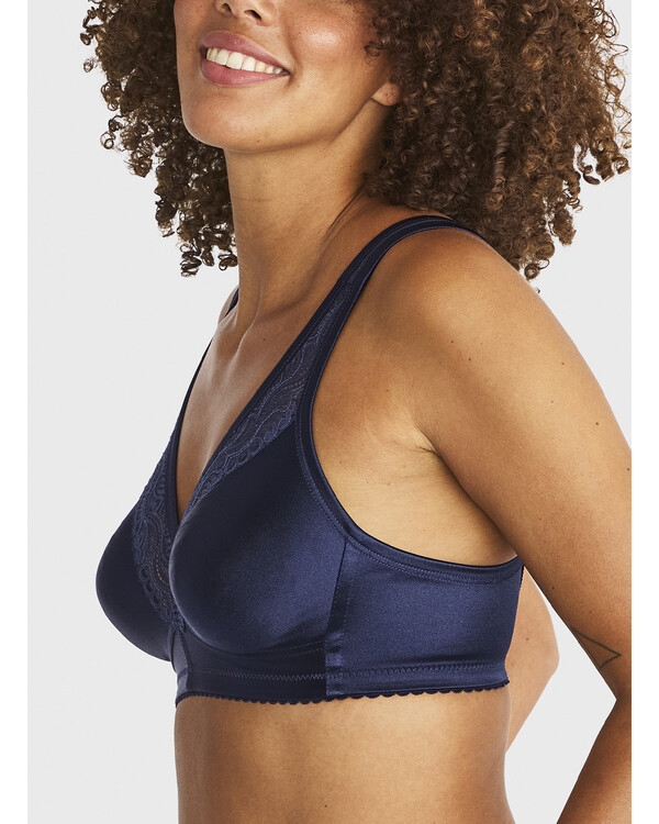 Kiiltävää nailonmateriaalia. Muotoonprässätyt kupit istuvat erinomaisesti. Leveät, pehmustetut olkaimet eivät paina ihoa. Säädettävät olkaimet. Mukava ja hyvä tuki poven alla. 90% nailonia ja 10% elastaania. Hienopesu 40°.
