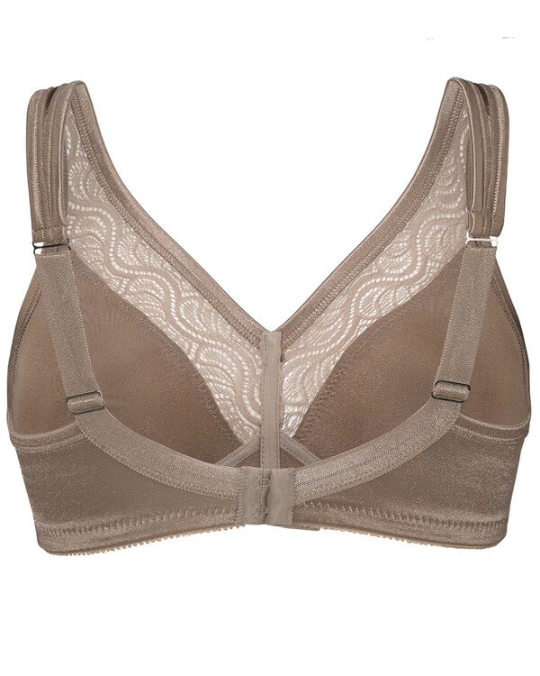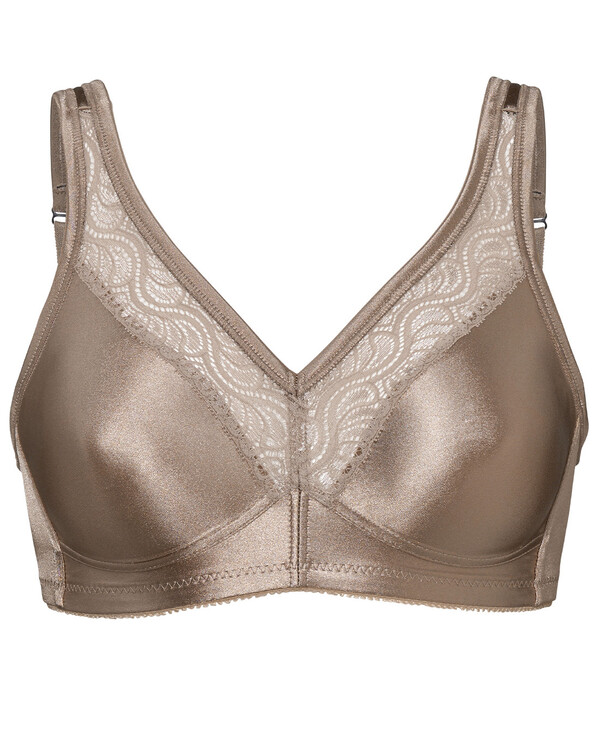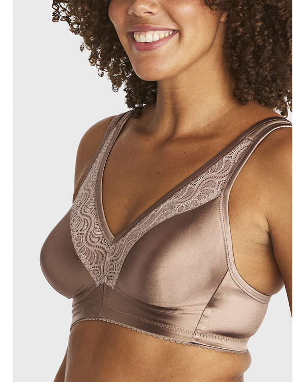 Kiiltävää nailonmateriaalia. Muotoonprässätyt kupit istuvat erinomaisesti. Leveät, pehmustetut olkaimet eivät paina ihoa. Säädettävät olkaimet. Mukava ja hyvä tuki poven alla. 90% nailonia ja 10% elastaania. Hienopesu 40°.