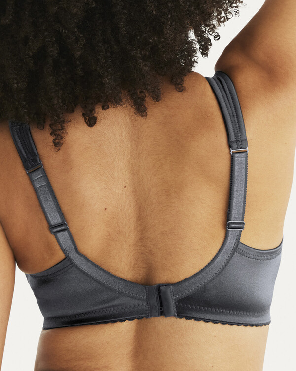 Kiiltävää nailonmateriaalia. Muotoonprässätyt kupit istuvat erinomaisesti. Leveät, pehmustetut olkaimet eivät paina ihoa. Säädettävät olkaimet. Mukava ja hyvä tuki poven alla. 90% nailonia ja 10% elastaania. Hienopesu 40°.