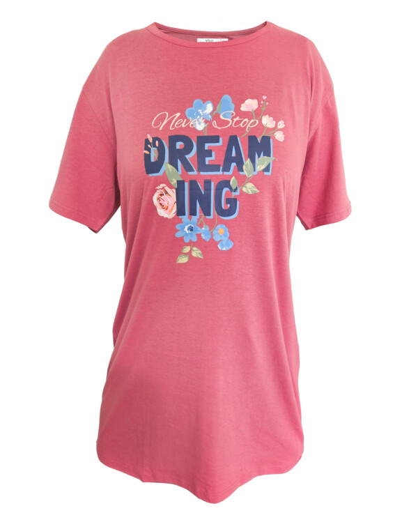 Lyhyemmän mallinen yöpaita. Yksi koko. Pituus noin 95 cm. 100 % puuvillajerseytä. Hienopesu 40°.