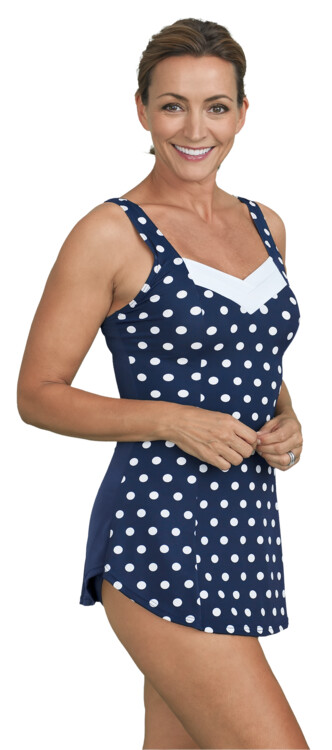 Istuva, vartaloa imarteleva malli. Kokonaan vuoritettu etuosa, pehmeät kupit ja tukinauha rinnan alla. Housussa matalaksi leikattu jalantie. Yksivärinen takaosa. Korkeahko selkäosa. 80 % polyesteriä 20 % elastaania. Hienopesu 30 . Väri mariini/valkoinen.