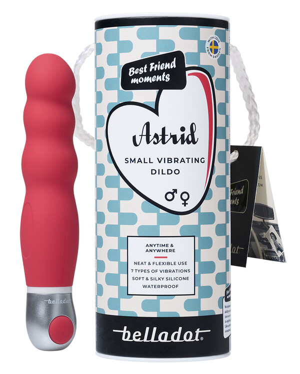 Belladot Astrid on pienempi, värisevä dildo, jossa on useita voimakkuudeltaan ja intensiteetiltään erilaisia värinäohjel...